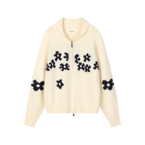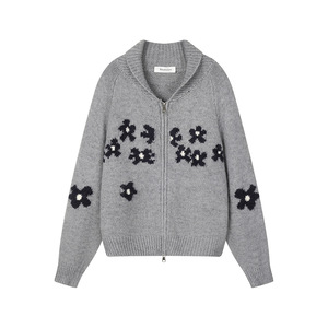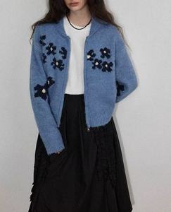 秋冬新款花朵毛衣开衫外套女慵懒风双头拉链针织上衣外搭2025秋冬