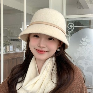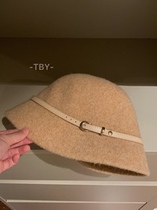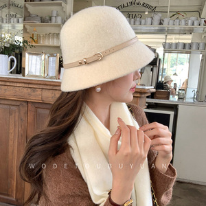 皮带扣羊毛帽子女秋冬季灰色简约小礼帽渔夫帽显脸小时尚圆顶盆帽
