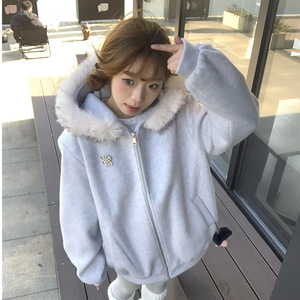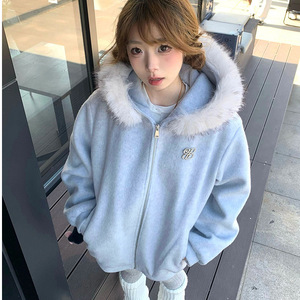 美式复古高街毛领连帽开衫卫衣外套女春秋2025oversize韩系慵懒风