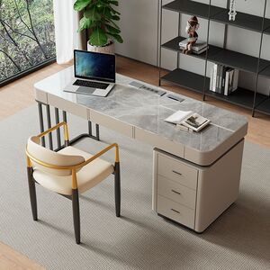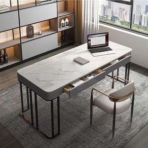 简约小户型北欧办公写字电脑桌意式轻奢高端岩板书桌书椅家用现代