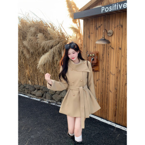 秋季大码胖MM显瘦围脖设计名媛风短款风衣外套