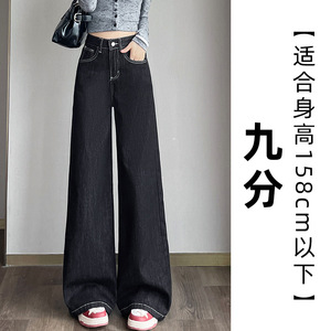 黑色阔腿牛仔裤女秋2025新款高腰显瘦撞色明线慵懒宽松拖地直筒裤