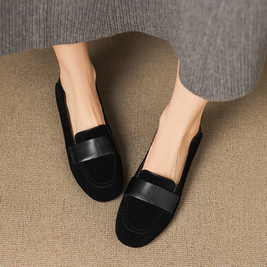 法式复古绒面乐福鞋2025春秋新款单鞋低跟平底鞋豆豆鞋一脚蹬女鞋