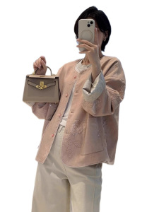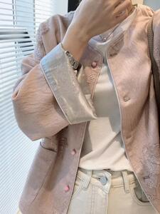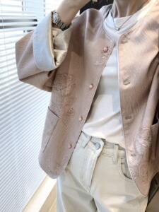 粉黛佳人~新中式温婉提花圆领宽松亮片刺绣外套2025早秋新G090508