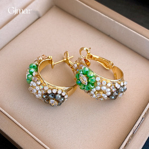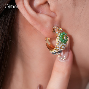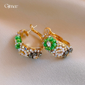 银针欧美复古彩色水晶镶钻花朵耳环轻奢高级感耳圈跨境气质耳饰女