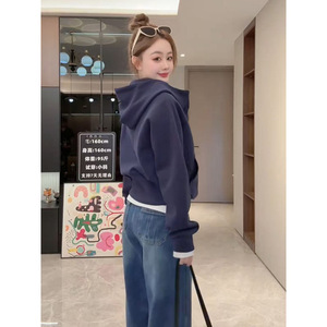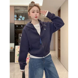 韩系慵懒风连帽卫衣女2025秋新款拉链开衫宽松显瘦小个子百搭外套