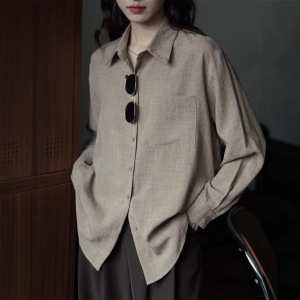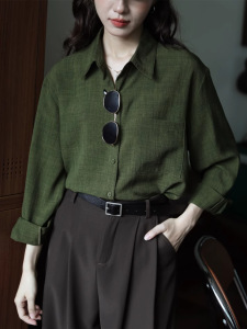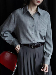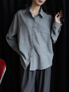 跨境复古长袖衬衫女春秋季新款内搭宽松显瘦港味纯色衬衣外套上衣