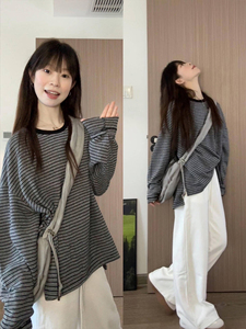 早秋流行穿搭黑色条纹长袖t恤女装2025新款轻职场通勤穿搭上衣服1