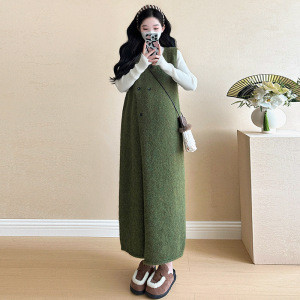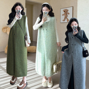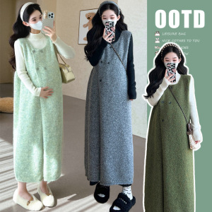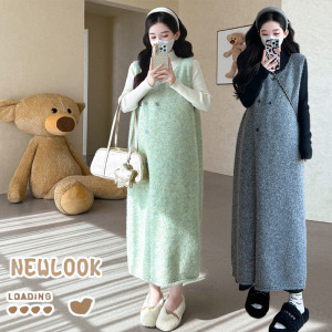 孕妇套装秋冬半高领针织连衣裙毛衣马甲个性长裙两件套春秋秋装女