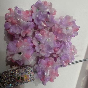 新款跨境夜光+光变立体花朵花球可过笔diy手机链包包链饰品配件