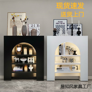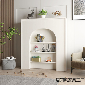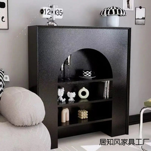 客厅黑色白色简约民宿玄关置物架室内收纳柜法式装饰收纳壁炉柜