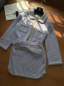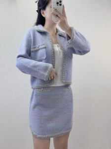 原版开发!深圳南油25早秋新款简约优雅高级感紫色羊毛衫短裙套装
