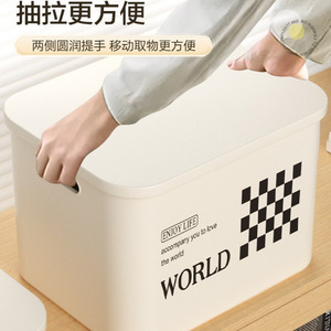居家桌面收纳盒零食杂物塑料整理筐家用长方形带盖收纳箱储物盒