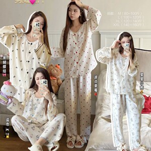 JIEAINA蕾丝花边软绵纱套装女春秋季长袖长裤甜美可爱圆领家居服