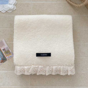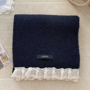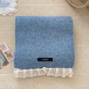 2025新款围巾女冬季韩版潮蕾丝边纯色仿羊绒保暖围脖青年学院风女