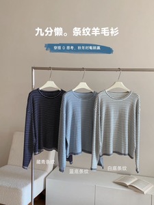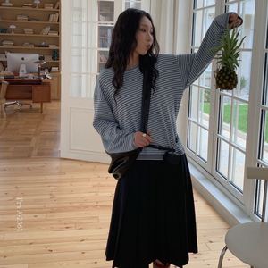 2025秋季新款时尚简约百搭休闲条纹圆领宽松显瘦长袖上衣女