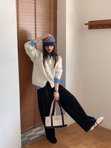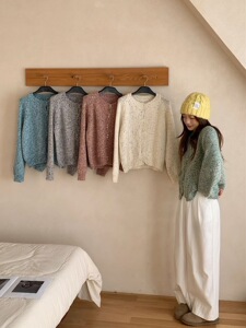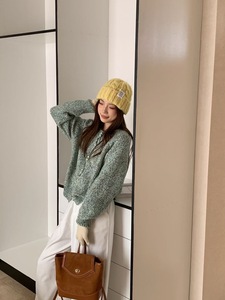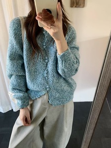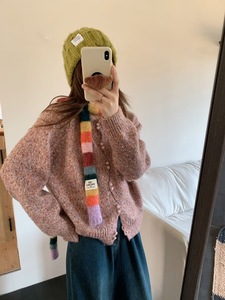2025秋冬韩系温柔系圆领宽松彩色点点长袖保暖毛衣针织衫上衣女装