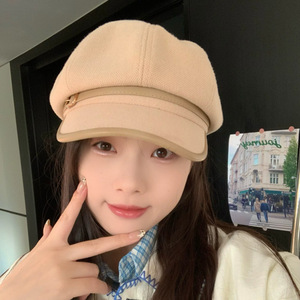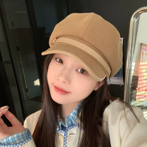 日系复古简约经典贝雷帽子女早秋大脸显脸小八角帽蓓蕾报童帽子