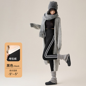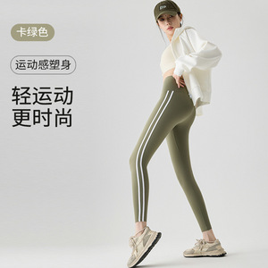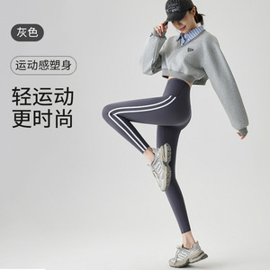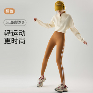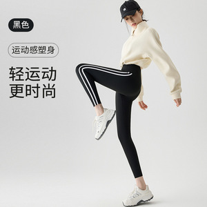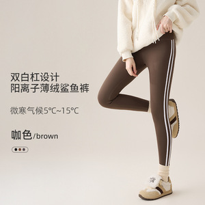 秋冬瑜伽裤加绒加厚运动侧条纹芭比裤冬款高腰鲨鱼裤保暖打底裤