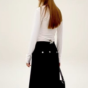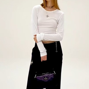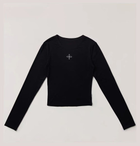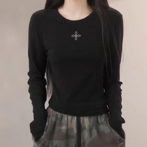 SMFK十字印章醋酸修身上衣 黑白两色纯色长袖T恤秋季