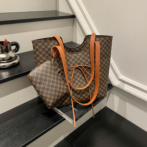 高级感印花托特包包女大容量百搭通勤单肩包复古时尚手提包子母包