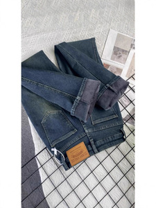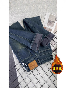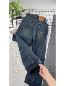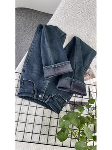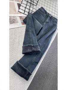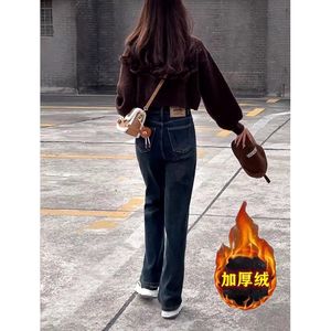 复古加绒加厚直筒牛仔裤女2025年冬季爆款高腰宽松显瘦窄版阔腿裤