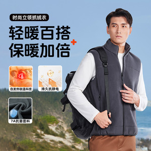 【保暖锁温科技】灯芯摇粒绒秋冬新款男士休闲马甲百搭拉链外穿套