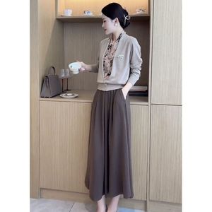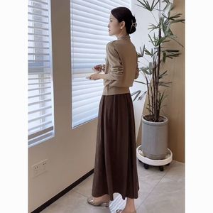 假两件套装新中式古着国风时尚显瘦长袖秋季针织开衫高腰半身裙女