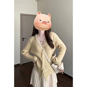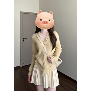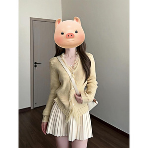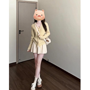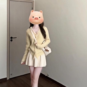 秋季搭配一整套2025新款甜美穿搭设计感黄色针织开衫连衣裙两件套