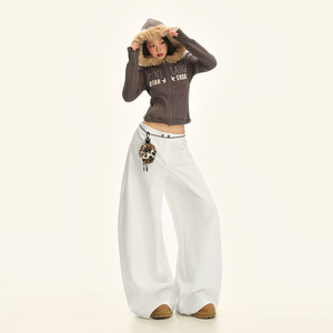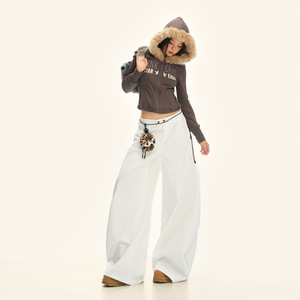 【今茵】2色/美式街头松弛慵懒感褶皱设计宽松阔腿弯刀裤休闲卫裤