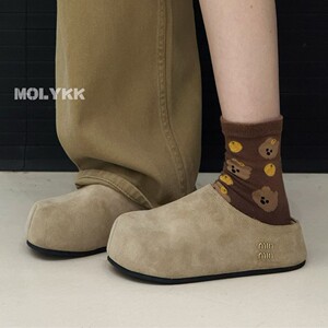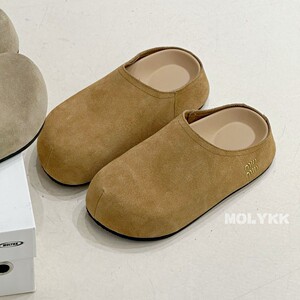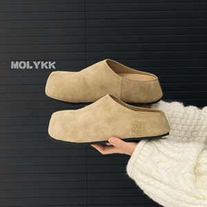 厚底卡皮巴拉勃肯鞋2025早春新款复古包头懒人半拖鞋反绒皮拖鞋女