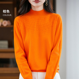 一线成衣镂空针织衫女秋冬新款内搭打底衫套头长袖无缝半高领毛衣