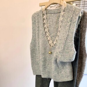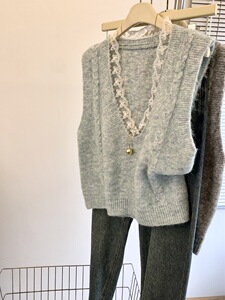 设计感蕾丝拼接针织马甲女春夏新款小个子叠穿小背心