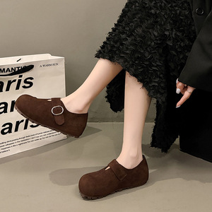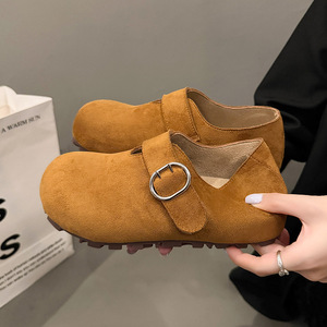 复古平底全包勃肯鞋女2025秋季新款百搭豆豆鞋软底玛丽珍博肯单鞋