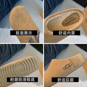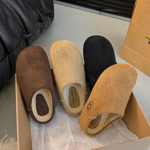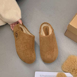 牛皮版~U家勃肯鞋加绒包头半拖鞋女外穿2025新款秋冬季一脚蹬