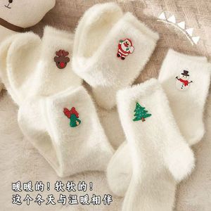 秋冬款袜子女白色水貂绒圣诞袜雪人圣诞老人圣诞树元素加厚保暖袜