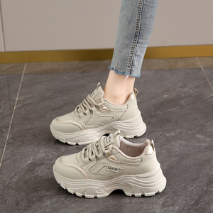 踩屎感炸街莆田老爹鞋女款2025新款春秋显脚小运动鞋真皮爆款软底