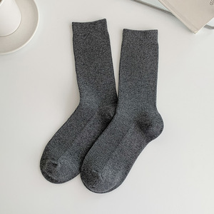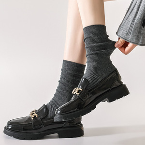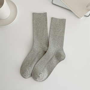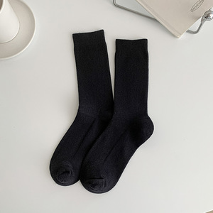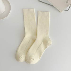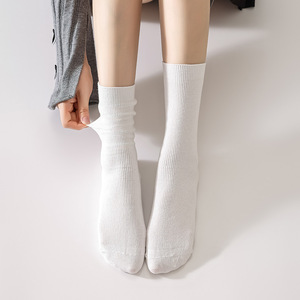 秋冬新款双针纯棉中筒袜子女四季款JK长袜显瘦百搭黑白灰色堆堆袜