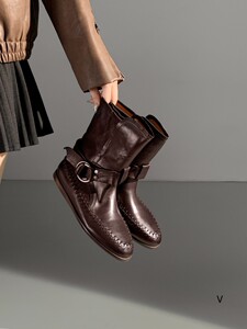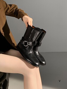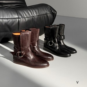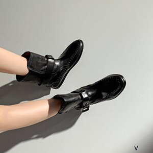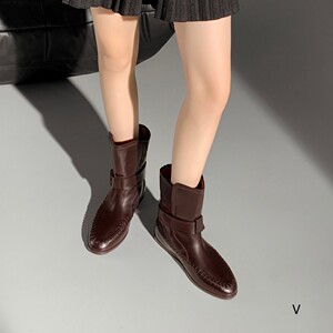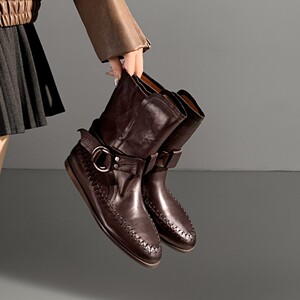 欧洲站女鞋25秋冬时尚软水洗牛皮圆头休闲舒适款套筒切尔西皮短靴