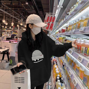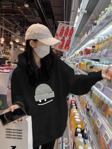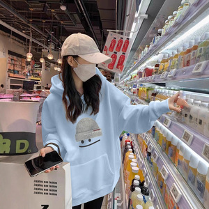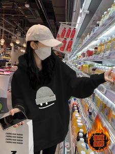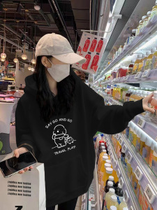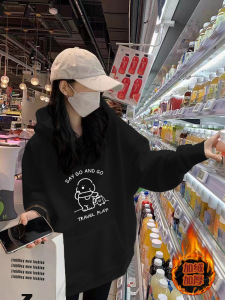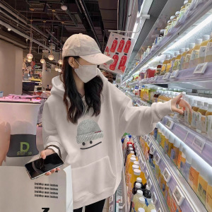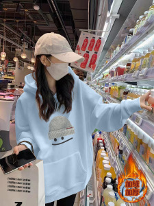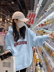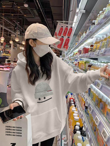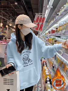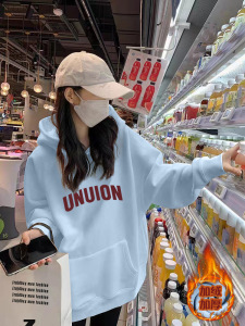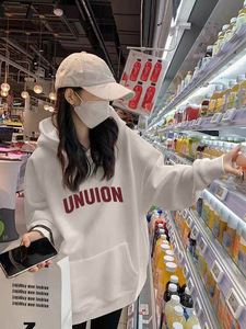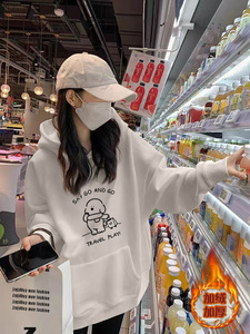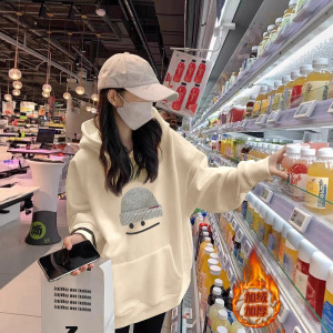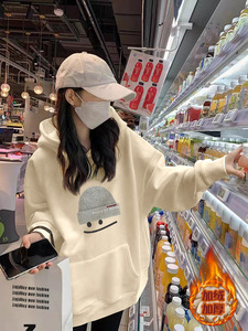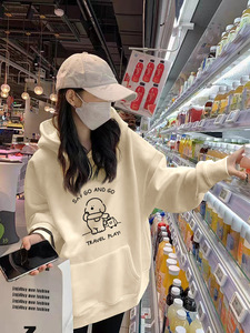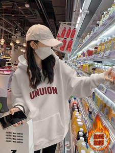 杏色连帽卫衣女2025新款秋季宽松大码上衣韩系胖mm加绒外套潮