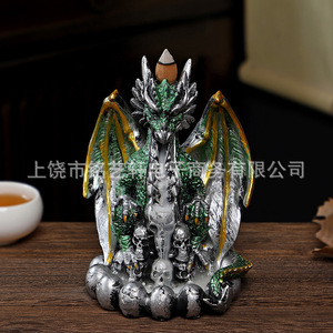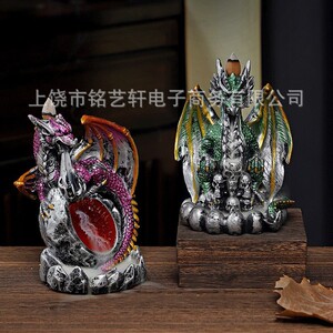 跨境爆款恐龙香炉摆件创意家居装饰布置树脂工艺品战斗龙倒流香炉