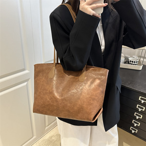 油皮通勤托特包包女大容量复古百搭手提单肩包2025新款时尚腋下包
