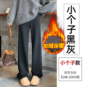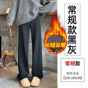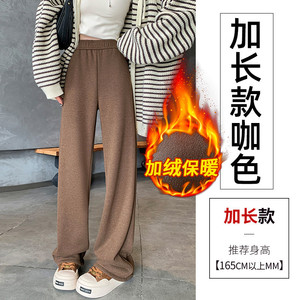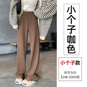 现货毛呢窄版阔腿裤女2025秋冬新款高腰垂感休闲人字纹加绒直筒裤