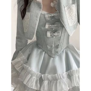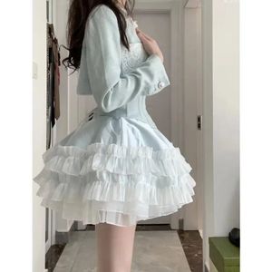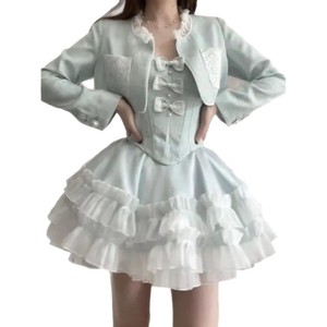 公主裙套装秋冬新款小香风短款外套+高腰收腰蝴蝶结蓬蓬裙两件套