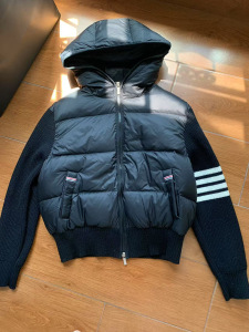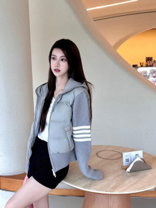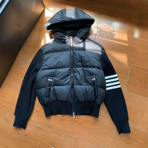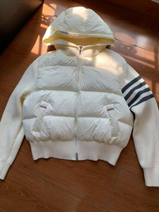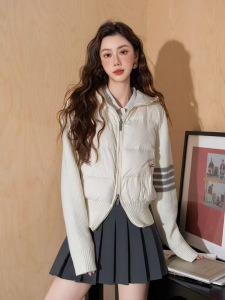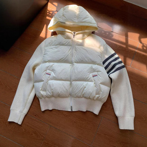 原版开发!深圳南油针织拼接白鸭绒羽绒服女款休闲学院风羽绒外套