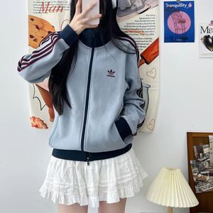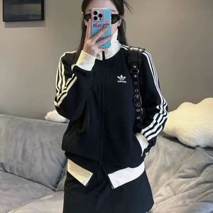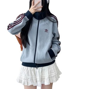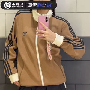 三叶草刺绣运动开衫外套夹克男女情侣秋冬款春秋季休闲三条杠上衣