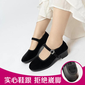 老北京布鞋女中跟一带广场舞鞋礼仪鞋表演鞋工作鞋舞蹈鞋女黑布鞋