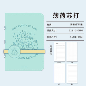 拾光A6活页手账本 白桃荔枝系列 ins简笔画风格学生笔记本手账本