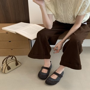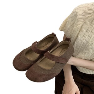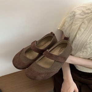 魔术贴平底圆头玛丽珍鞋女鞋子2025年春秋新款复古灰色绒面单鞋