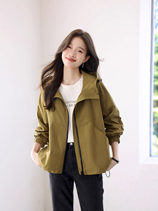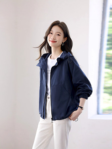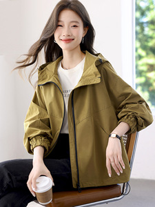 休闲外套女春秋2025新款显瘦中年妈妈宽松大码减龄流行连帽短风衣